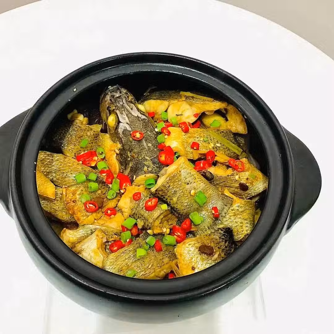 鱸魚、豆腐、洋蔥、紅彩椒、生薑、大蒜、小蔥