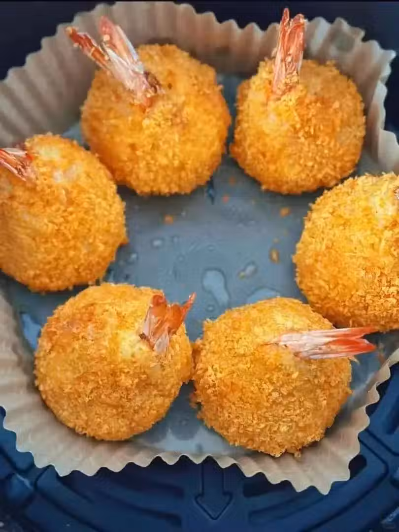 3️⃣ 炸籃噴油,蝦尾朝上擺放