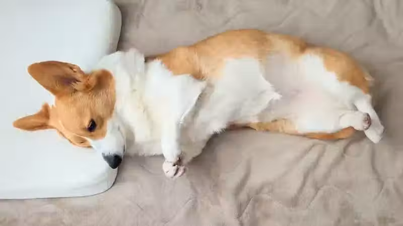 網友拍下《剛睡醒的柯基犬》腿短狗狗想要伸展一下的動作太可愛惹