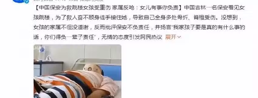 保安徒手接跳.樓女孩,女孩母親:我女兒若有事,你要一輩子負責!