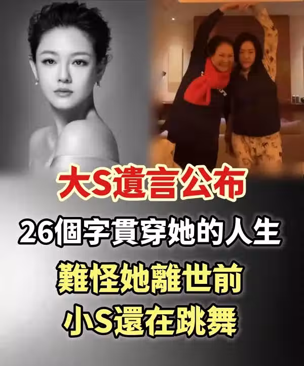 大S遺言公布,26個字貫穿她的人生,難怪離世前小S還在跳舞!