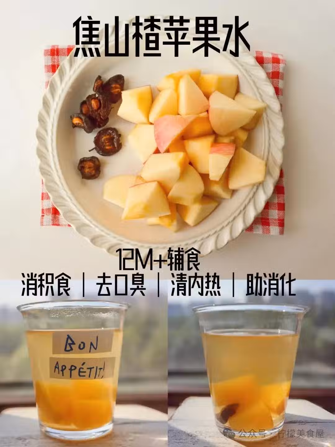 焦山楂健胃消食,消食力度大於新鮮山楂。焦山楂蘋果水也是一款經典的蘋果水。 平時孩子肉吃多了,零食吃多了,積食,便秘,舌苔厚,睡眠差,都可以喝這款焦山楂蘋果水。 一周歲以上的寶寶就可以喝了,每次適量喝,一周喝兩三次即可,不宜空腹喝,不宜長期大量喝。 有時我也會給我家孩子安排,清內熱、助消化。家裡有孩子的,可以試試哦。 食材: 焦山楂10克、蘋果一個 做法: 1、蘋果用鹽搓洗乾淨,去皮去核切塊。 2、蘋果塊、焦山楂放到養生壺裡,加適量水,煮20分鐘即可。