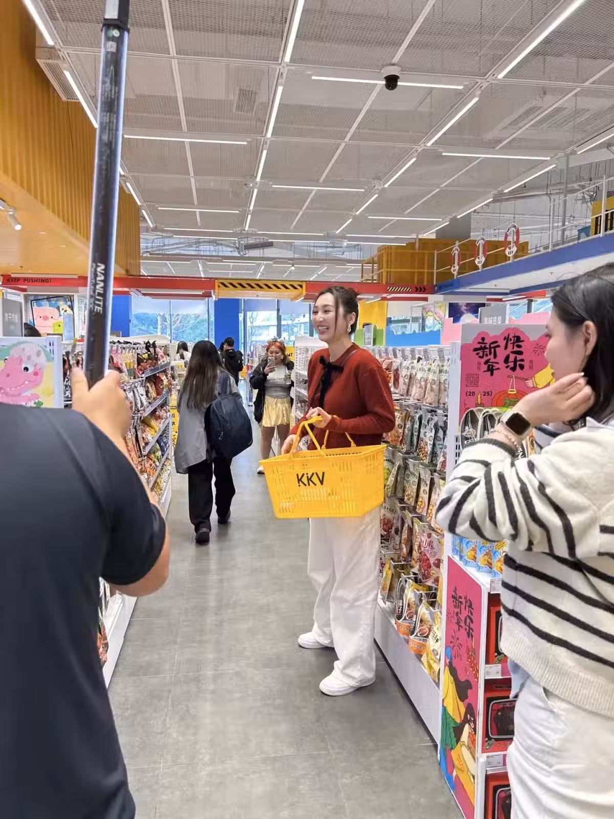 高海寧的身邊跟著幾位助理,她一進入商店,馬上吸引顧客的目光,很多原本在選購的民眾,都紛紛跑過來圍觀,還拿出手機拍照!