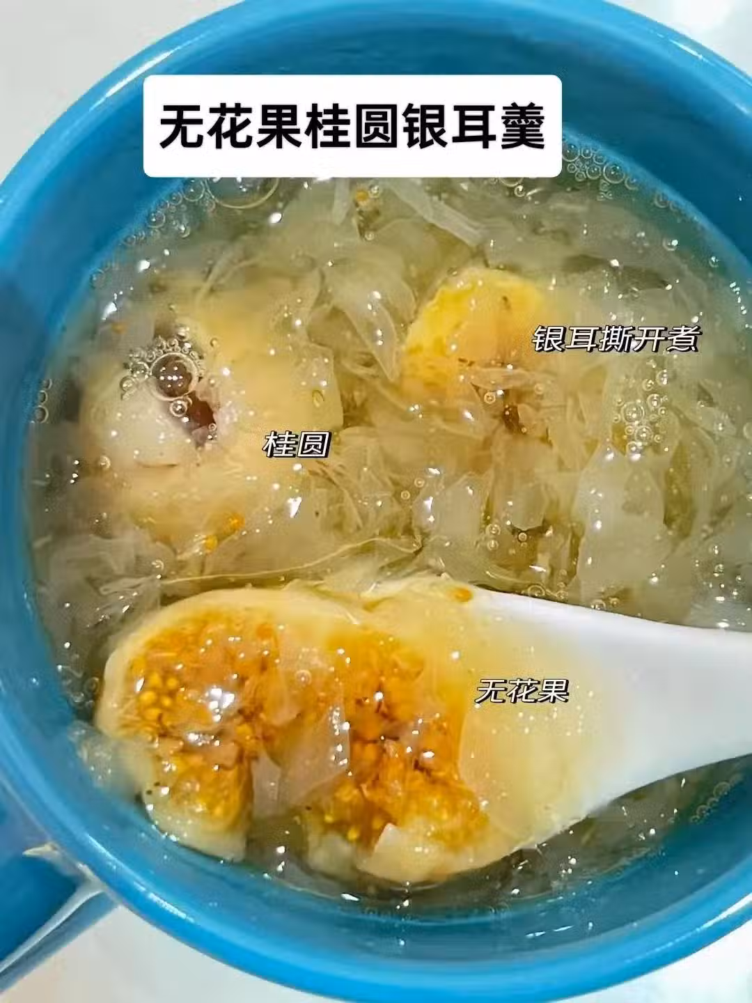 3顆無花果、5顆桂圓肉,1小朵銀耳