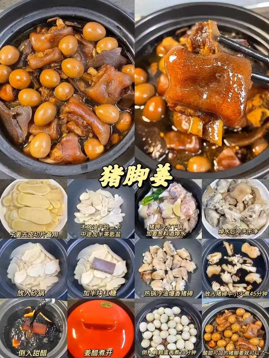 豬腳姜是廣東阿嬤的硬核浪漫,豬腳+薑片+甜醋+鵪鶉蛋,小火慢煨到姜辣變溫柔。