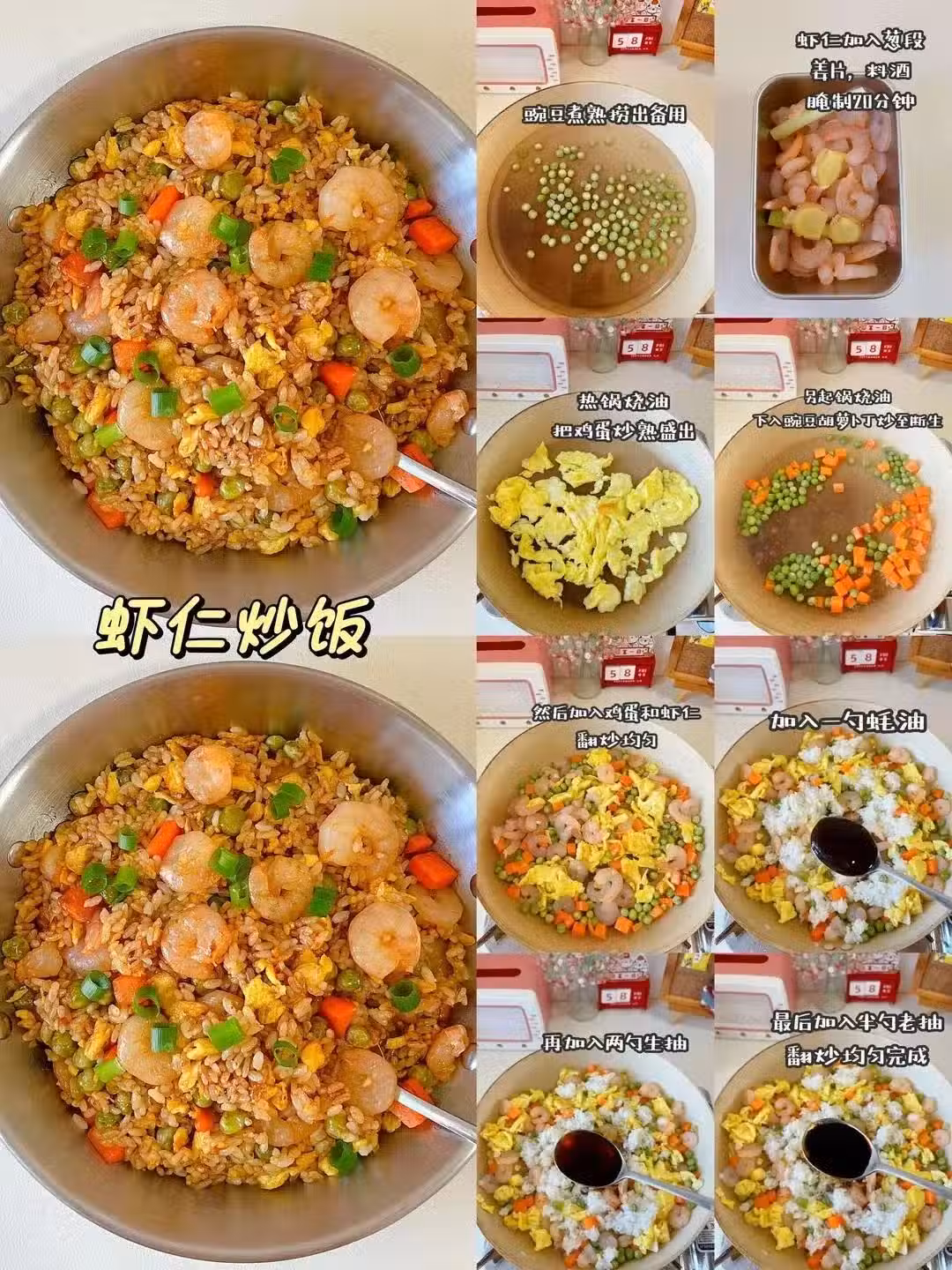 凍蝦仁解凍擦乾,熱鍋煎到蜷成小月亮,雞蛋液往飯里攪勻再下鍋,金燦燦一盤子端出來,隔壁小孩直接饞哭。秘訣就一句:蝦仁別炒老,彈牙才夠鮮!