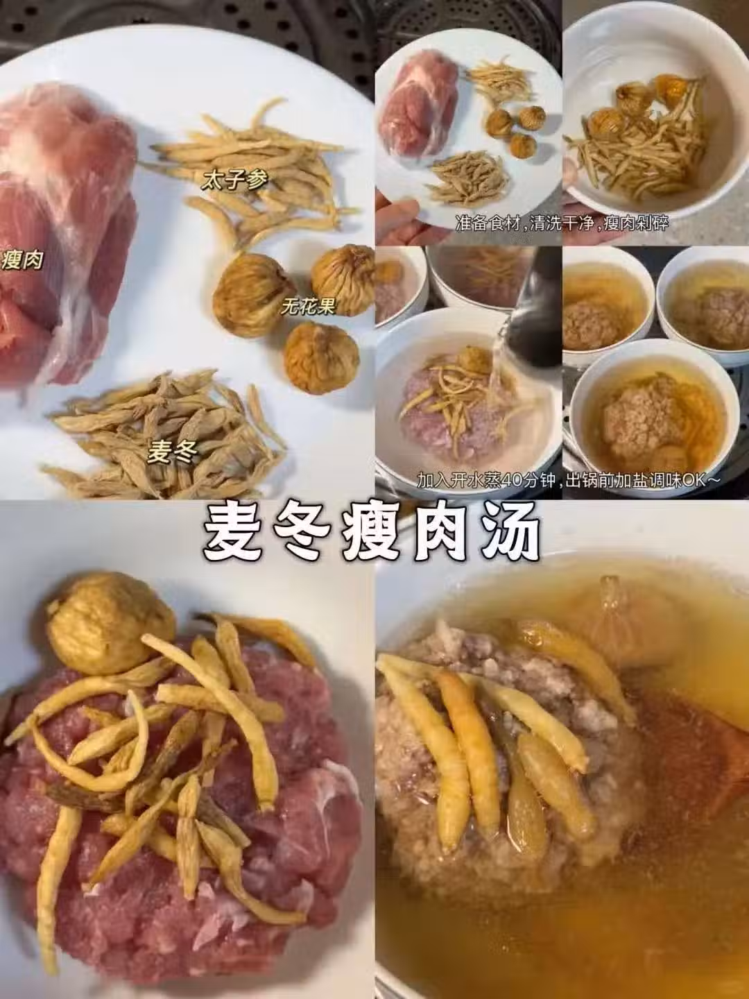先把瘦肉剁成肉末,和太子參、無花果、麥冬一起放進鍋里。