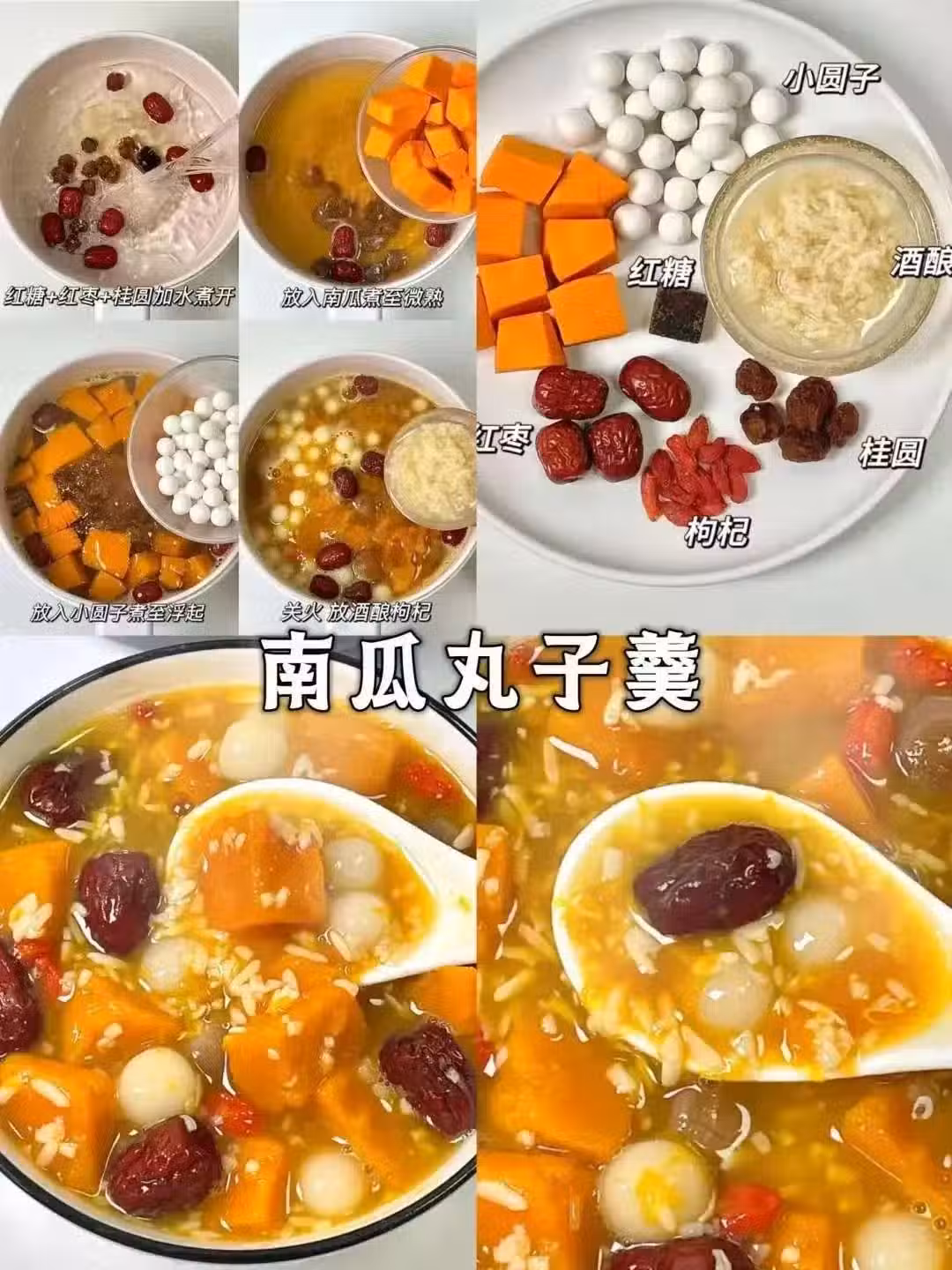 放入南瓜煮至微熟,然後加入小圓子,煮到圓子浮起來。