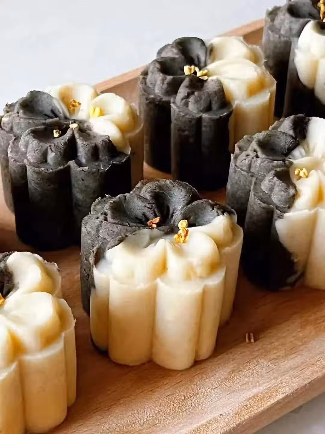 2️⃣ 黑芝麻炒香打粉,+蜂蜜調成流心餡