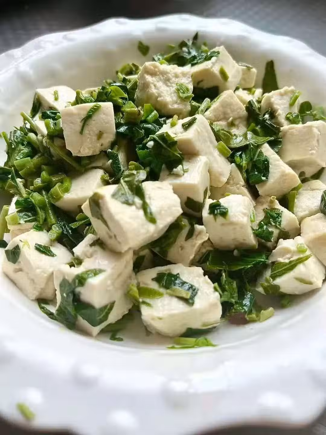 2️⃣ 切末+嫩豆腐壓碎,+松子仁