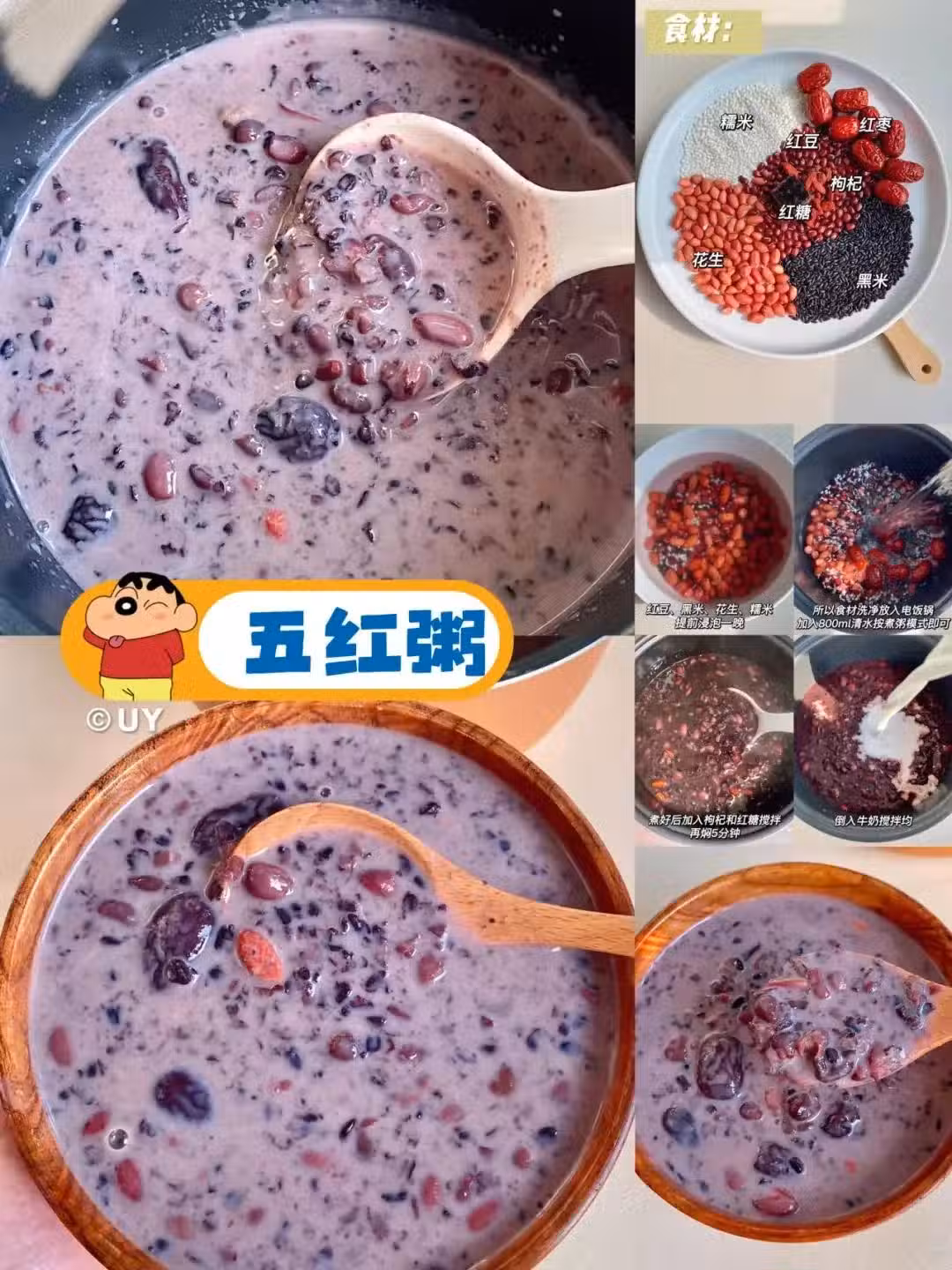 紅豆、黑米、花生、糯米、枸杞、紅棗、紅糖
