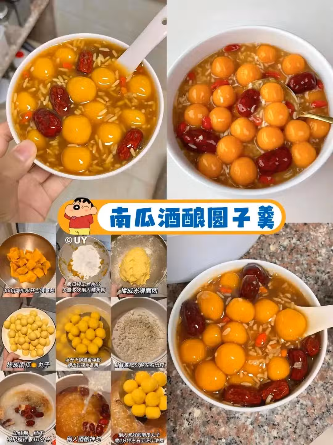 南瓜、糯米粉、紅糖、紅棗、枸杞、酒釀