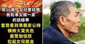 我56歲,女兒要結婚,我和准女婿一家約談婚事。當我看到准親家公時,頓時大驚失色,震驚加憤怒拉起女兒就走。