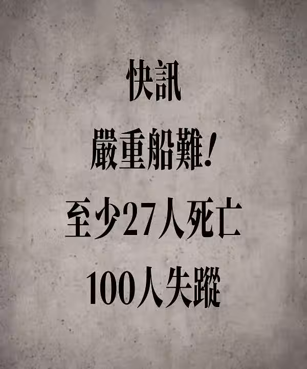 快訊/嚴重船難 至少27人死亡、100人失蹤!