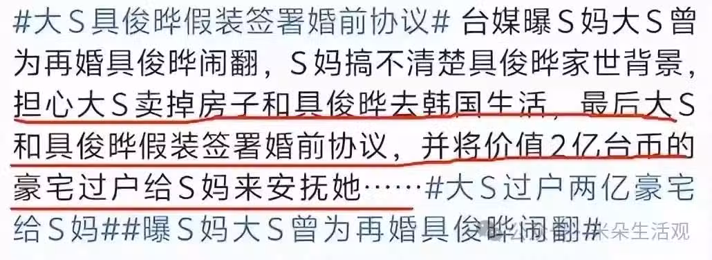 大S假裝簽婚前協議保4套房給子女,S媽黃春梅計劃泡湯!