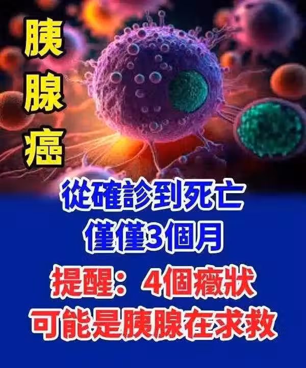 胰腺癌:從確診到死亡僅僅3個月!四個症狀,可能是胰腺在求救