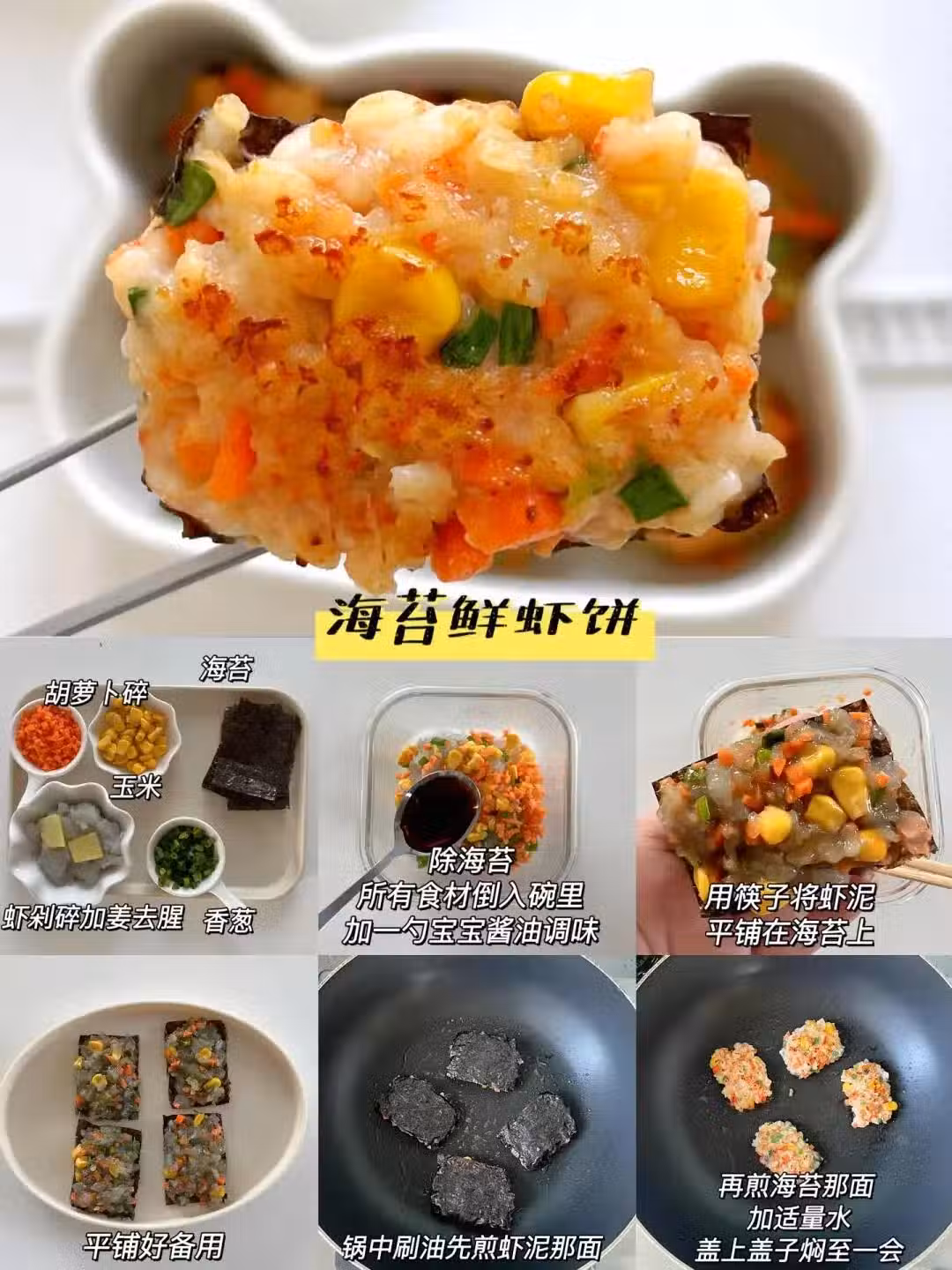 海鮮市場的平替,蝦泥加玉米粒,鋪上海苔煎到兩面金黃。