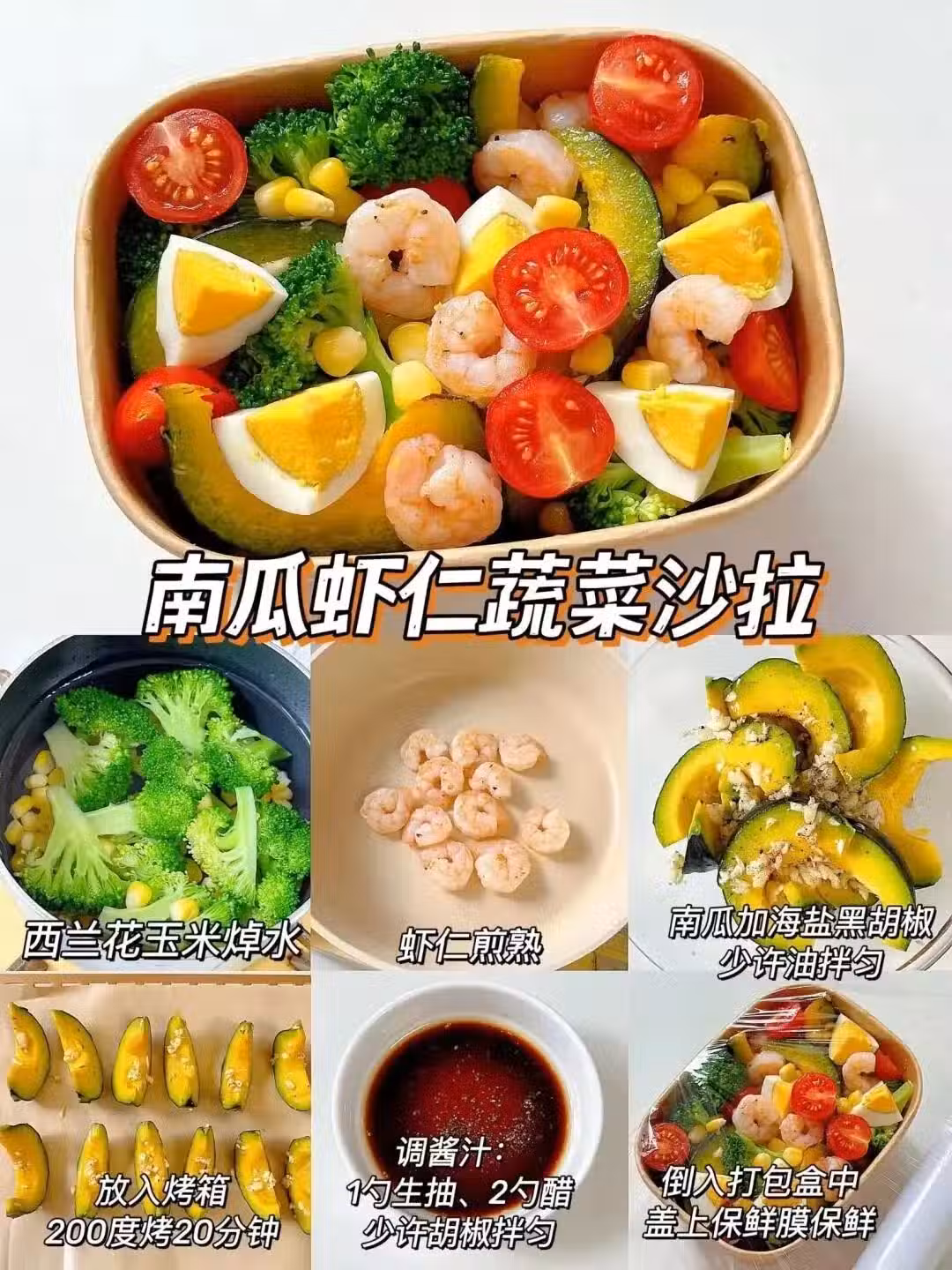 這道美食是健身黨最後的倔強,蒸熟的南瓜壓成泥打底,堆上焯水蝦仁和生菜小番茄,淋油醋汁。 自帶甜味的天然沙拉醬,吃完還能舉著南瓜碗啃兩口,環保人設瞬間拉滿。