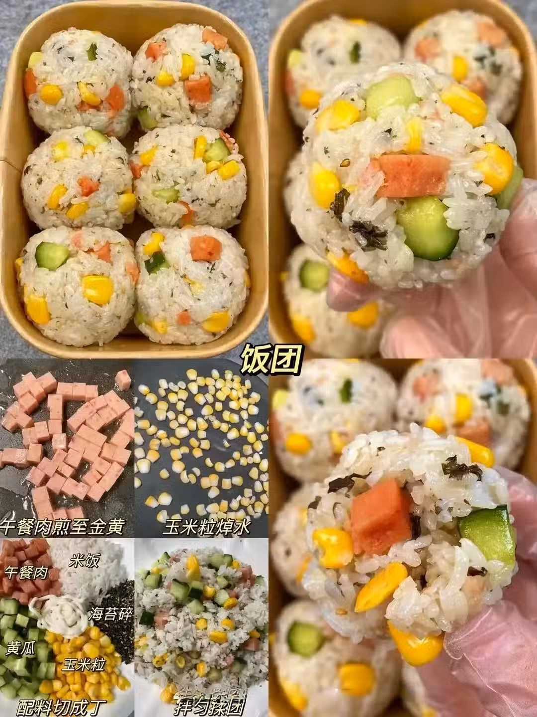 剩飯逆襲天花板!胡蘿蔔丁、玉米粒、午餐肉碎拌進米飯,捏成球裹海苔碎,微波爐叮1分鐘,軟糯帶脆,比壽司店20塊一份的還香!
