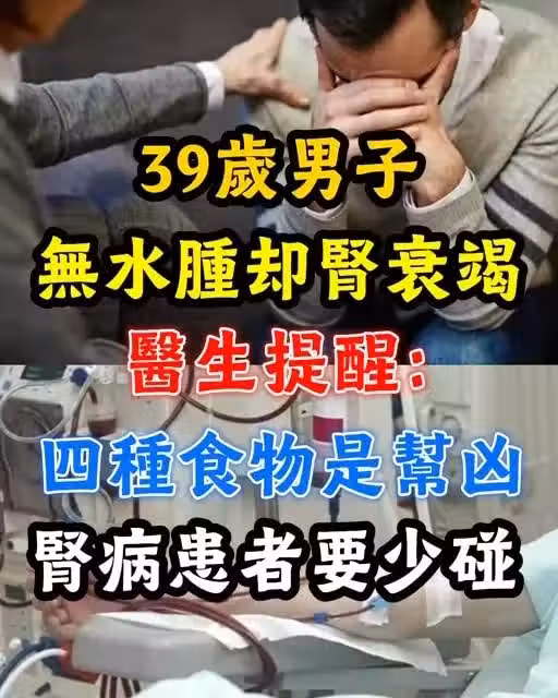 39歲男子無水腫卻腎衰竭?提醒:4種食物是幫凶,腎病患者要少碰