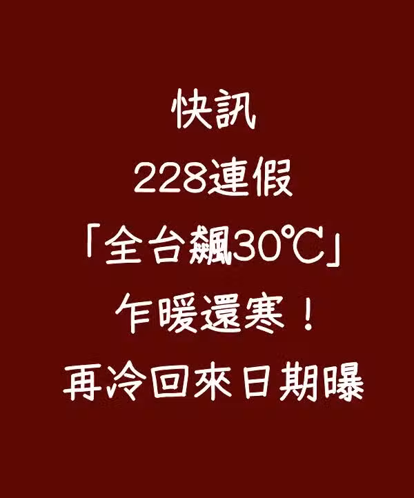 快訊/228連假「全台飆30℃」 乍暖還寒!再冷回來日期曝