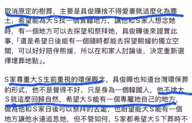 他拒絕了大S樹葬的方式,並於黃母一家重新商議下葬方式及地點,