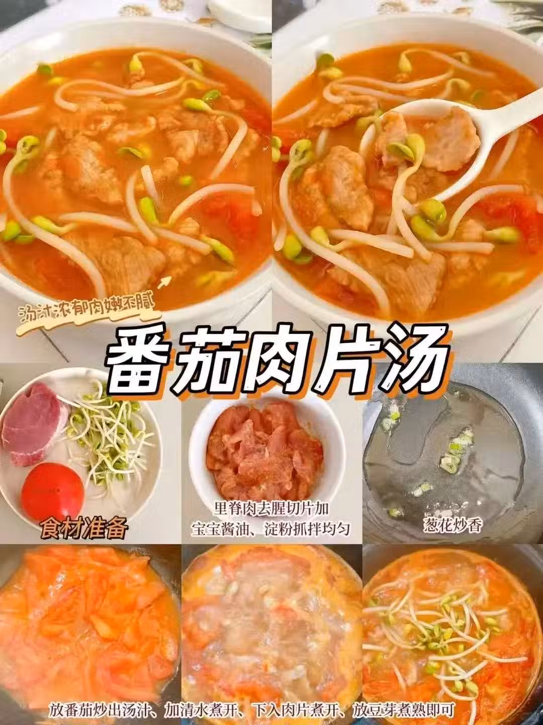 加清水煮開,放入肉片煮開,最後放入豆芽煮熟。