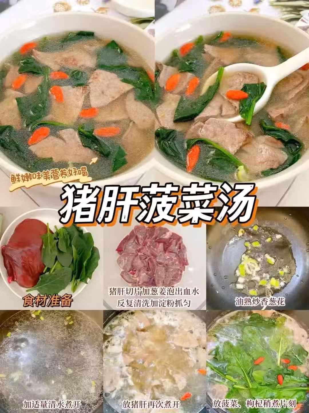 炒香蔥花,加適量清水煮開,放入豬肝再次煮開。