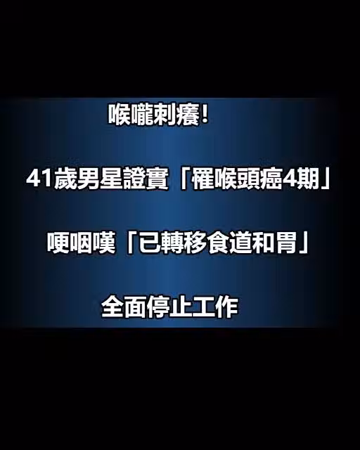 喉嚨刺癢!41歲男星證實「罹喉頭癌4期」 哽咽嘆「已轉移食道和胃」全面停止工作