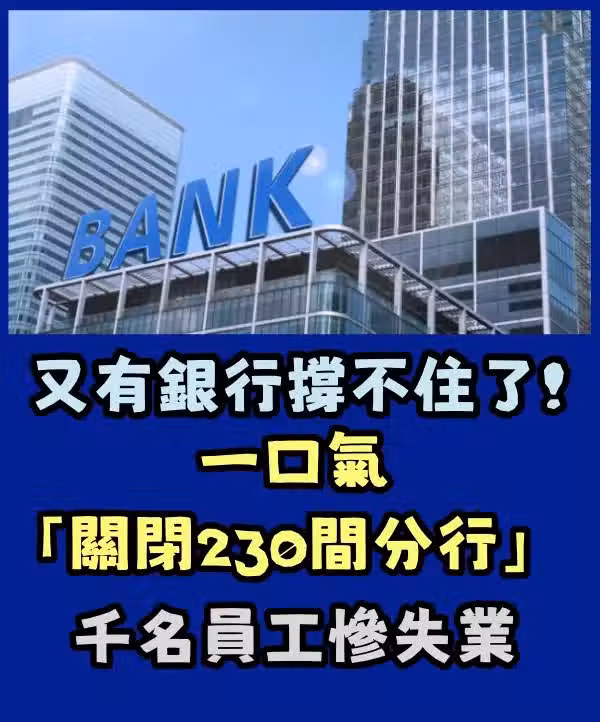 台銀行撐不住了!一口氣「關閉230間分行」,千名員工慘失業
