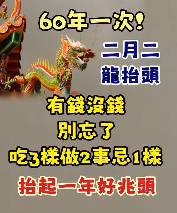 60年一次!二月二龍抬頭,有錢沒錢,別忘吃3樣做2事忌1樣,抬起一年好兆頭