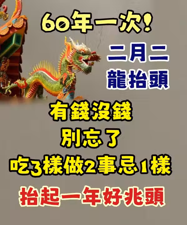 60年一次!二月二龍抬頭,有錢沒錢,別忘吃3樣做2事忌1樣,抬起一年好兆頭