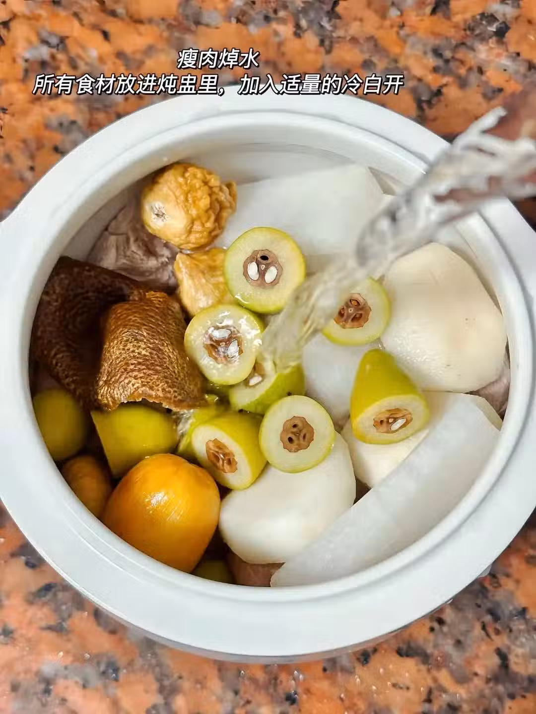 2. 將所有食材放進燉盅里,加入適量的涼白開