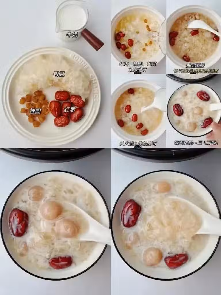 食材:銀耳 桂圓 紅棗 牛奶