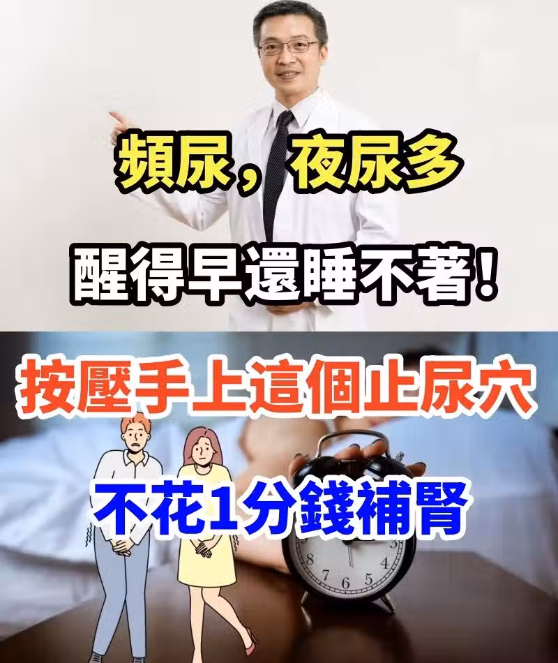 頻尿、夜尿多、醒得早還睡不著!按壓手上這個止尿穴,不花1分錢補腎【壯*陽】,夜尿消失,一覺睡到天亮!