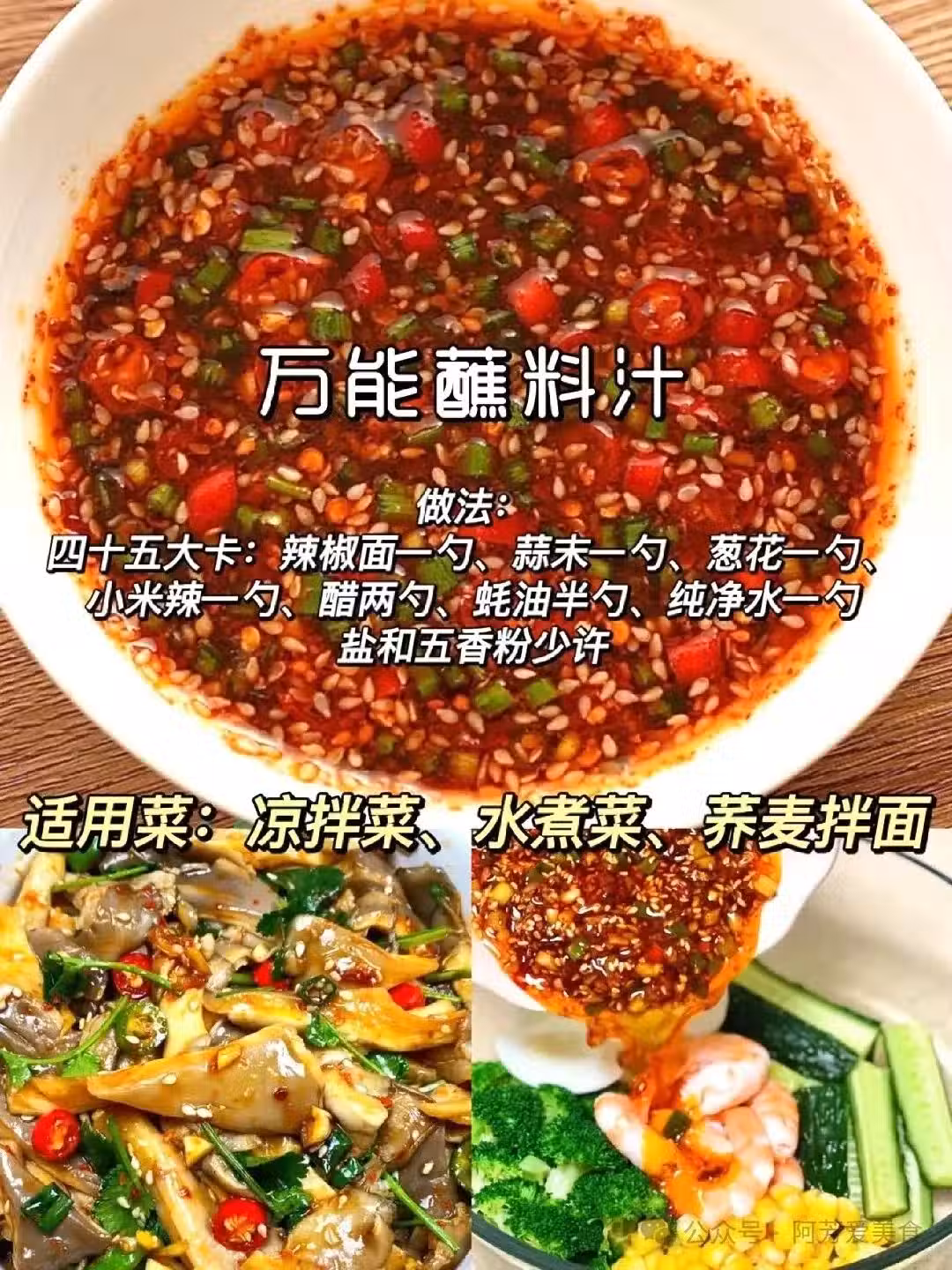 這款蘸料的做法非常的簡單,如果有不能吃辣的辣椒麵就加半勺噢,這款適用於各種類型的,吃起來非常有味道。