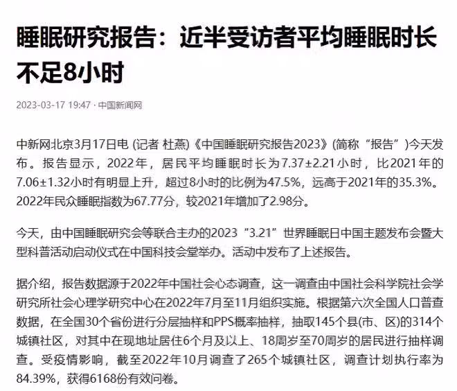 從2022年調查報告顯示,全國平均睡眠時間低於8小時超過50%,其中也包括低於7小時的,難道8小時睡眠論是錯誤的?
