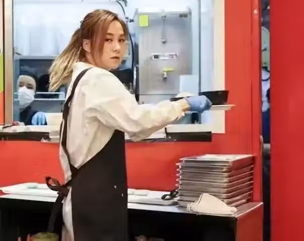 之後又熟練地為客人點單,手腳麻利的她看上去並不像一位幕前藝人。據她透露,她在疫情期間就已經負責樓面的工作,所以雜活碎活都駕輕就熟。