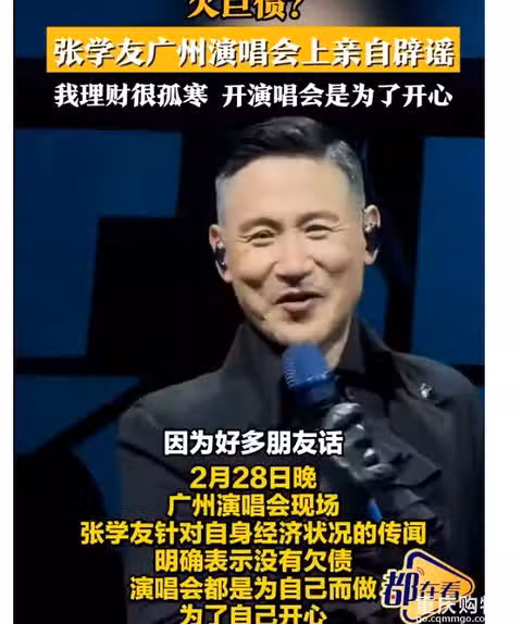 接著張學友表示,自己真的沒有欠別人錢,「小時候,我媽媽就跟我說:『兒子啊,借錢是很困難的,一定要靠自己努力。』這句話我一直記到現在,所以我其實是很害怕借錢的,不太敢去借錢。」透露之所以開這麼多演唱會,都是為了自己而做,「因為我覺得開心,希望能讓更多喜歡聽我唱歌的朋友,聽到我的歌聲。」
