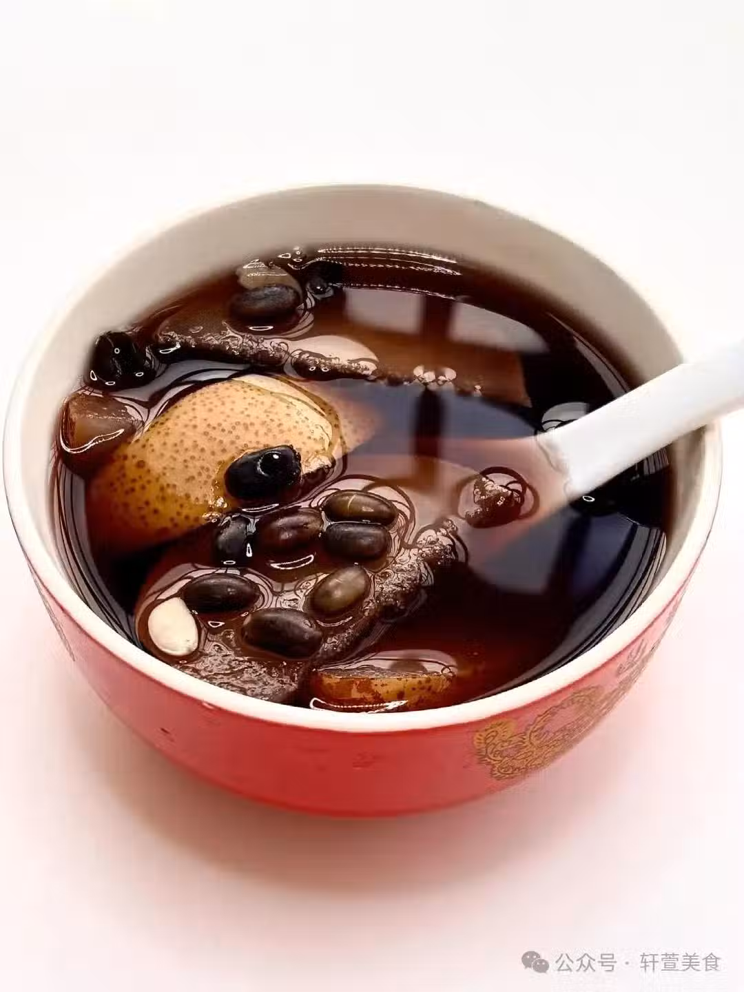 將黑豆和梨洗乾淨,梨去核切塊與黑豆一起放入養生壺內加水燉煮