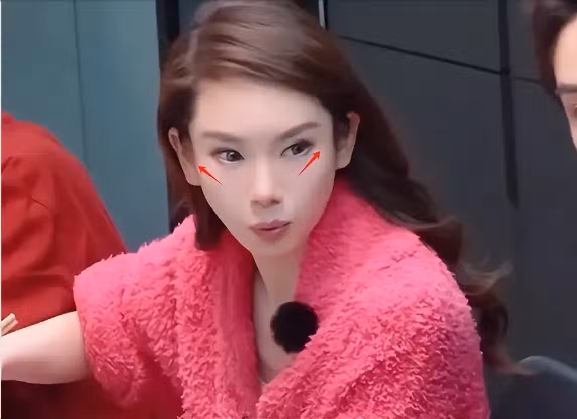 從畫面中不難看出,戚薇眼角高吊、眉毛上揚,連大笑時本應該彎彎的笑眼都變成一條向上揚的斜線,連同下面部的異常凸起,組合起來十分不自然。
