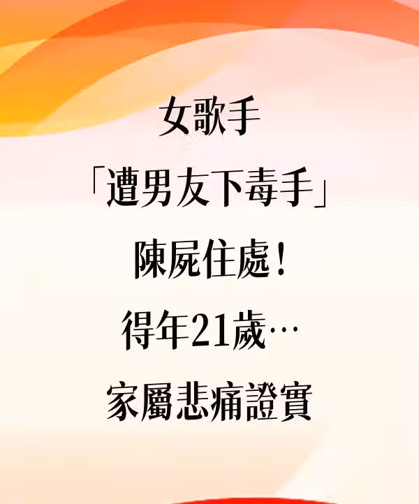 快訊/女歌手「遭男友下毒手」陳屍住處!得年21歲.…