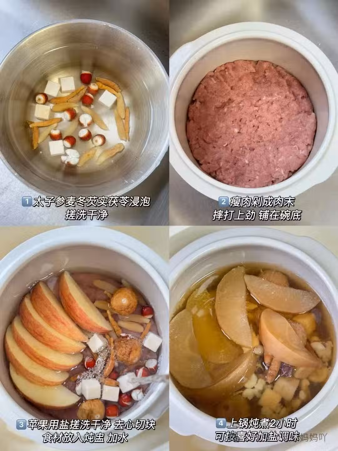 🍎蘋果半個、太子參3-5g、麥冬8g、