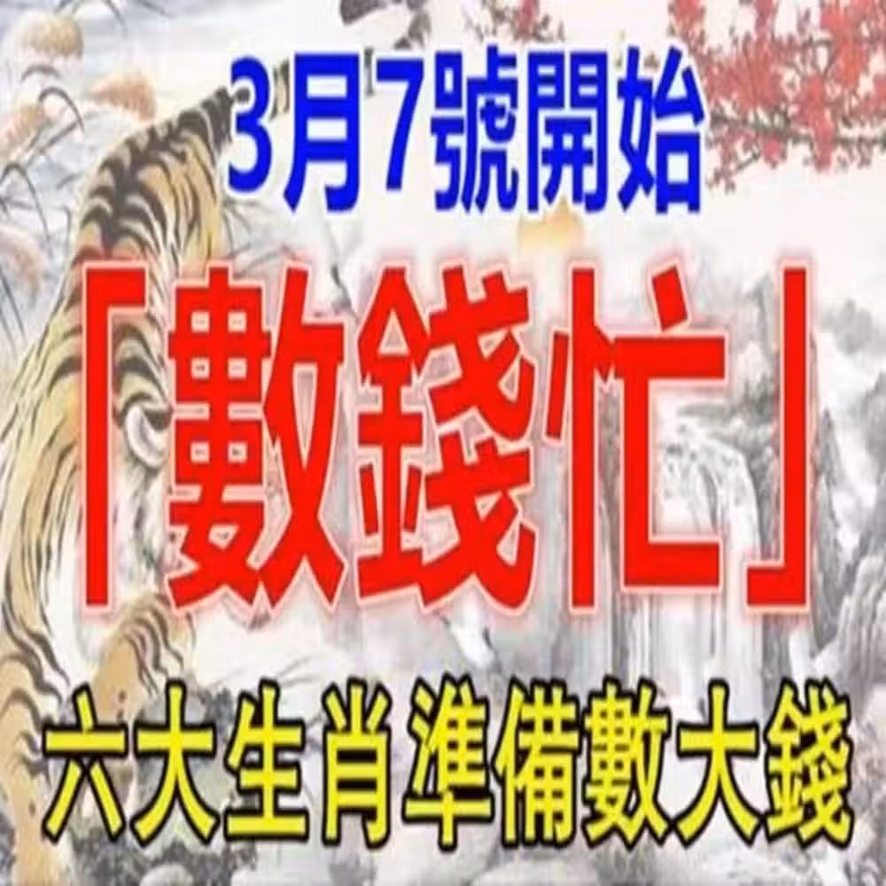 3月7號開始(數錢忙)六大生肖準備賺大錢!