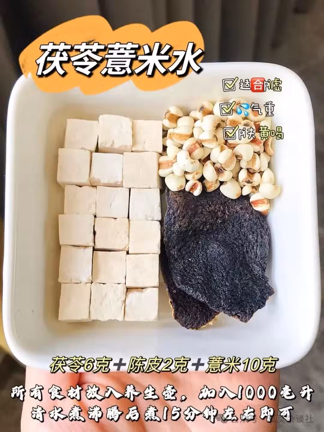 食材: 茯苓6克 | 陳皮2克 | 薏米10克