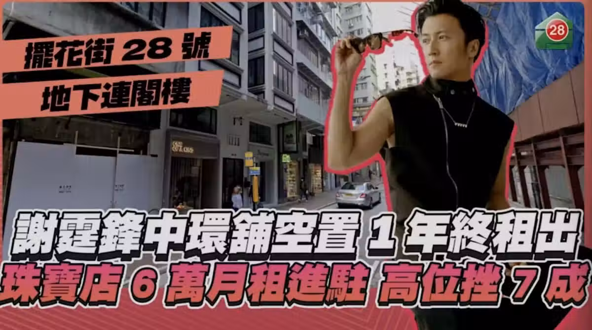 謝霆鋒這間位於香港中環擺花街的28號店鋪的地下建築面積為700平方尺(約合65.03平方米),因為是特色店鋪,還有500平方尺(約合46平方米)的樓閣,又是位於中環,所以租金價格一直都高企。不過因為這幾年香港的房產租賃價格一直下滑,再加上實體店經營業大受衝擊,導致這個店鋪自2024年1月之後就一直丟空。謝霆鋒在2024年叫價為每月10萬的租金,結果無人問津,一年後也就是2025年1月,他降價至6.8萬元,才終於有了聲響,租客在砍價之後,最終以6萬元的價格承租。