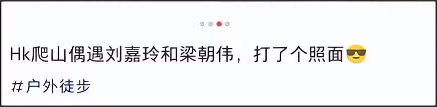 而最近終於有街坊碰到了他們兩人了,當時兩人正在上山跑步。劉嘉玲穿著平常跑步的裝備,至於梁朝偉則穿著白色短袖T恤配上黑色短褲。由於這位街坊和他們是迎面而來,所以只能拍到他們的背影。