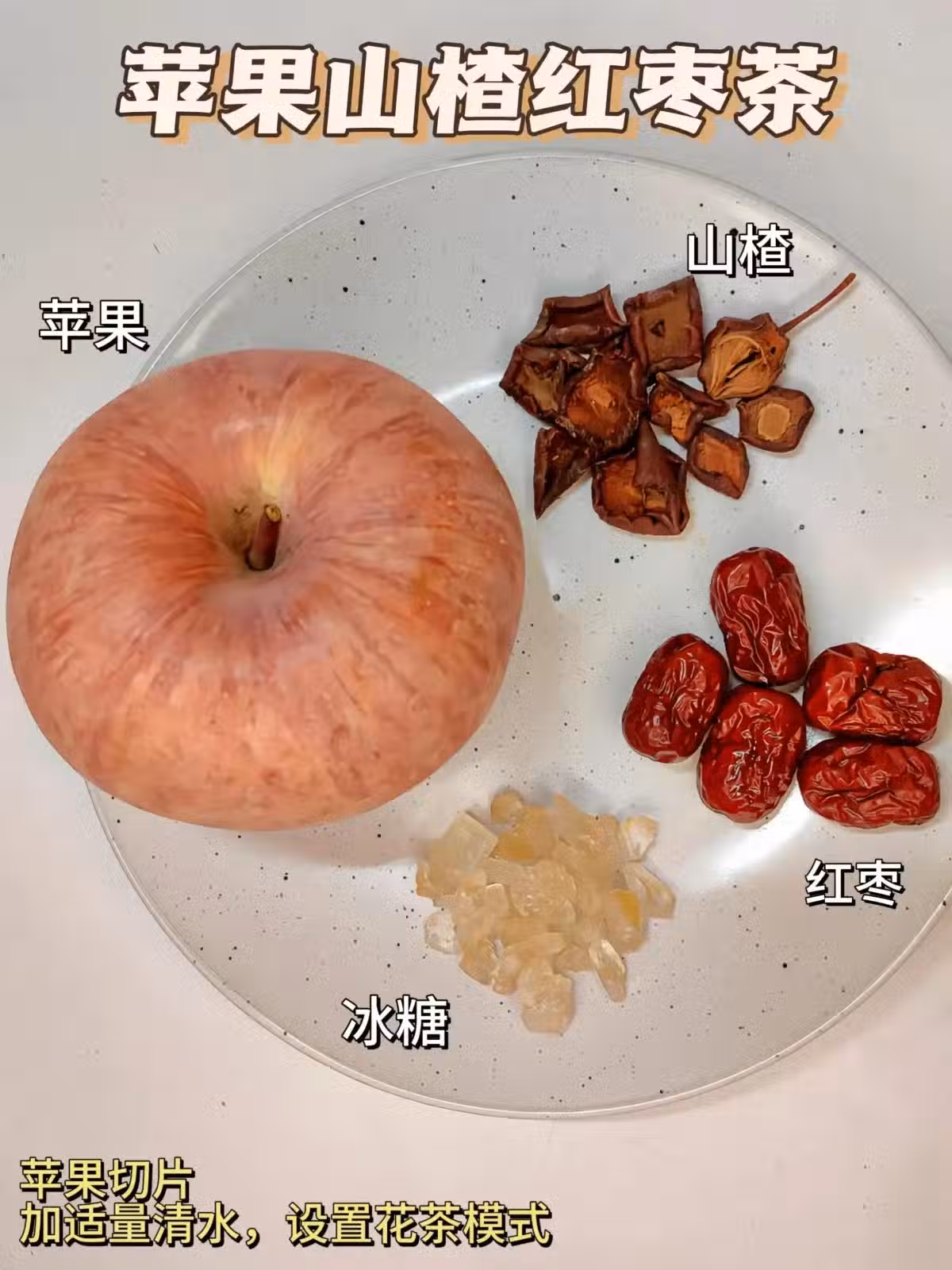 ❇️蘋果陳皮紅棗茶:帶皮蘋果1個,去核紅棗5顆,陳皮1片,枸杞5g,加入清水。