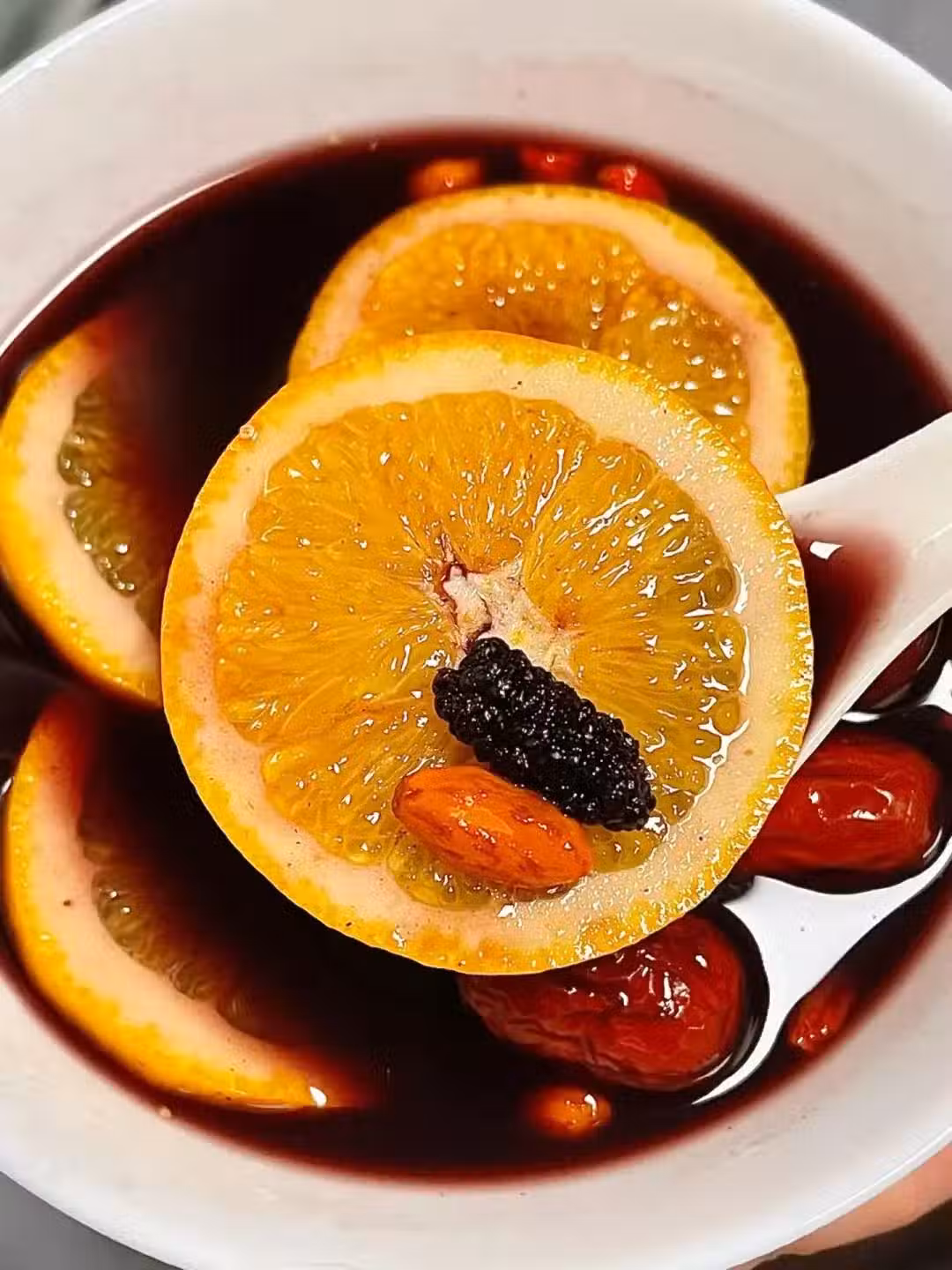 別看這茶顏色深,卻有著滿滿的維生素和花青素。黑色入腎,紅色入心,枸杞滋補肝腎又明目,桑葚滋陰補血,橙子和紅棗能補充維生素和氣血。喝了一段時間,同事都說我臉色顯得更紅潤了。