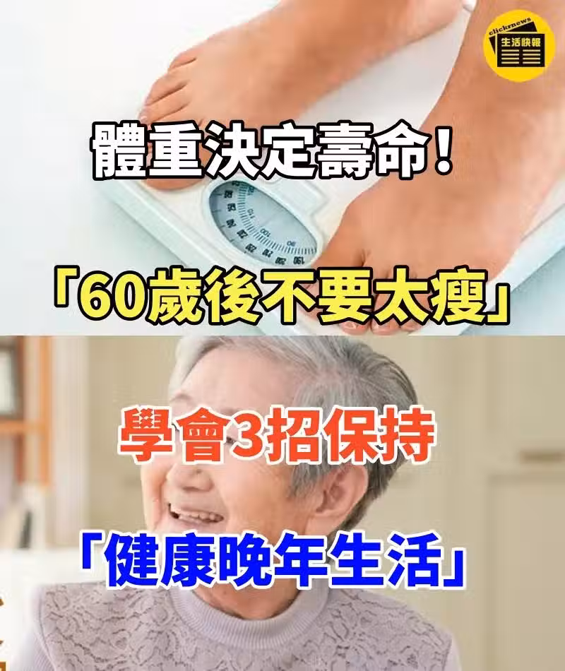 體重決定壽命!「60歲後不要太瘦」 維持這樣體重剛好!學會3招保持「健康晚年生活」